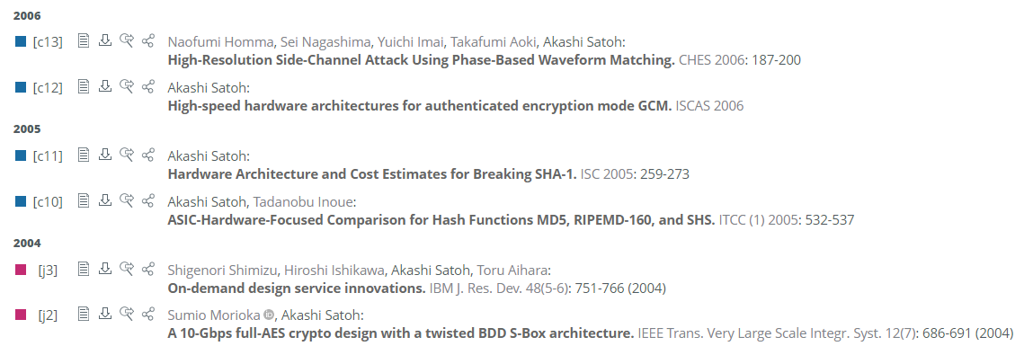 Одной из ключевых статей Akashi Satoh стала работа, опубликованная на Международной конференции по информационным технологиям в 2005 году, в которой описывалось использование технологии ASIC для оптимизации хэш-функций MD5, RIPEMD-160 и различных вариантов SHA. Эти алгоритмы активно используются в системах защиты данных и криптографии, а SHA-256 стал основой для обеспечения безопасности Bitcoin.