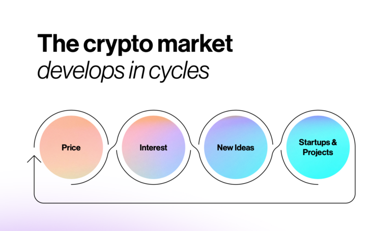 Мы в середине цикла четвертого цикла «цена-инновация». Все рынки, в том числе и крипторынок, цикличны, и цена — ключевой фактор, который привлекает разработчиков, идеолог, комьюнити и инвесторов в проект. И только потом рождаются новые идеи, стартапы и полноценные компании.
