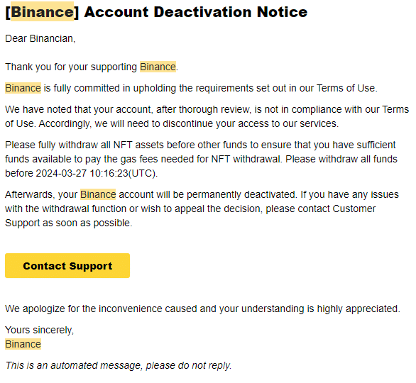 Нам написал представитель Binance и заявил, что в настоящее время никаких отдельных действий в отношении пользователей с Украины не предпринимается: