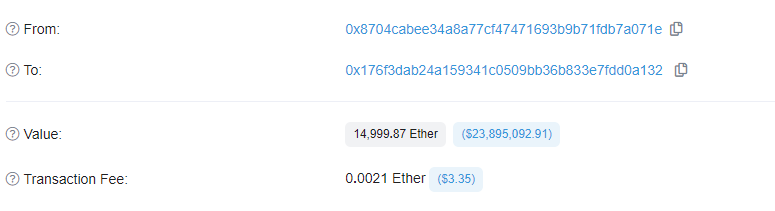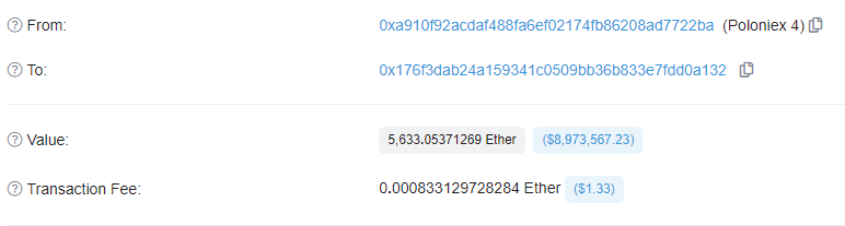 Согласно информации эксплорера Etherscan, Джастин Сан добавил на свой кошелек 20 633 ETH в двух транзакциях на этой неделе — основатель проекта Tron перевел 5 633.5 ETH на сумму почти $9 миллионов с биржи Poloniex в понедельник, после чего добавил 14 999.87 ETH на $24 миллиона сегодня, 2 сентября: