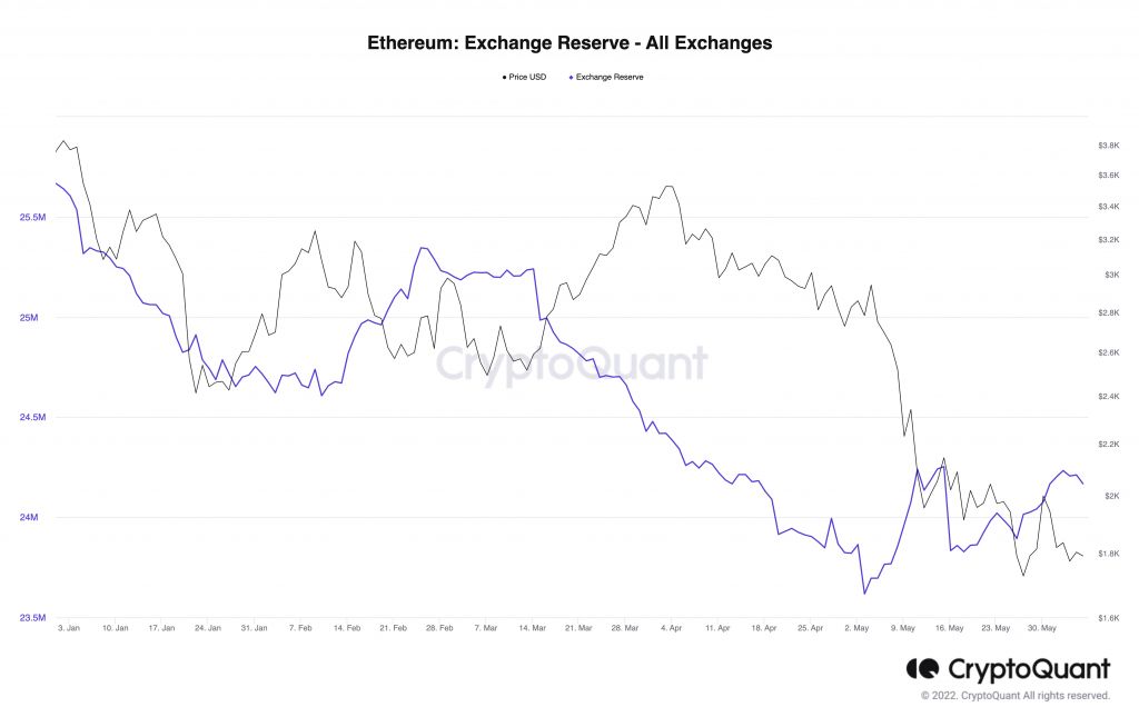 При этом многие специалисты предрекают более масштабное падение — данные аналитического ресурса CryptoQuant показывают, что общее количество Ethereum на криптобиржах увеличилось с мая на 550 459 ETH: