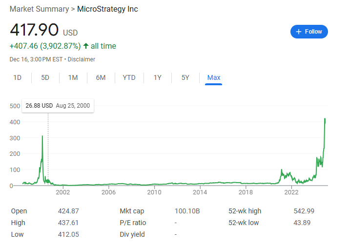 Основанная в 1989 году, MicroStrategy изначально занималась разработкой корпоративного аналитического программного обеспечения. Компания базируется в Остине и предлагала решения для обработки и анализа больших данных. Однако в начале 2000-х годов стоимость её акций резко упала из-за краха доткомов. Восстановление началось только к 2020 году, когда MicroStrategy изменила свой стратегический фокус и стала первой публичной компанией, активно инвестирующей в Bitcoin.