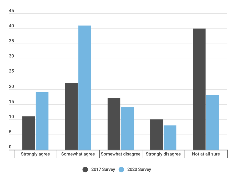 Уверенность в том, что биткоин станет широко используемой валютой, возросла за последние три года. С 28% до 43% выросло количество респондентов (с 44% до 60% среди миллениалов) считающих, что большинство людей будут использовать биткоин в течение следующего десятилетия. Эти сдвиги, вероятно, являются результатом возросшей поддержки первой криптовалюты среди розничных компаний и, прежде всего, крупных ритейлеров. Однако при этом у опрошенных сохраняется предубежденность насчет природы первой криптовалюты. С 46% до 37% сократилось количество респондентов, полагающих, что биткоин — это пузырь. Причем среди миллениалов так полагают только 24%, а среди старшего поколения — 50%.