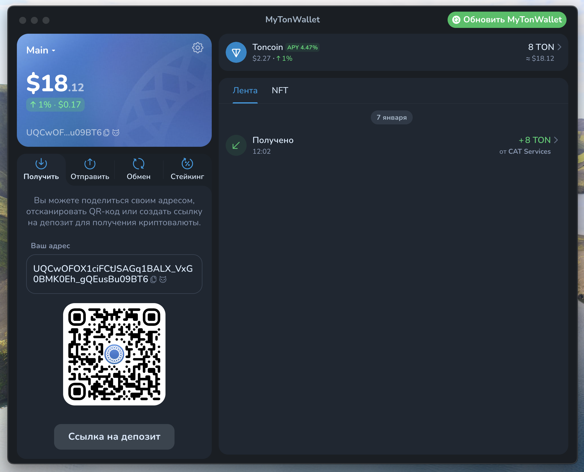 Установить кошелек можно максимально быстро — переходим по ссылке mytonwallet.io и скачиваем подходящий вариант для вашей ОС.