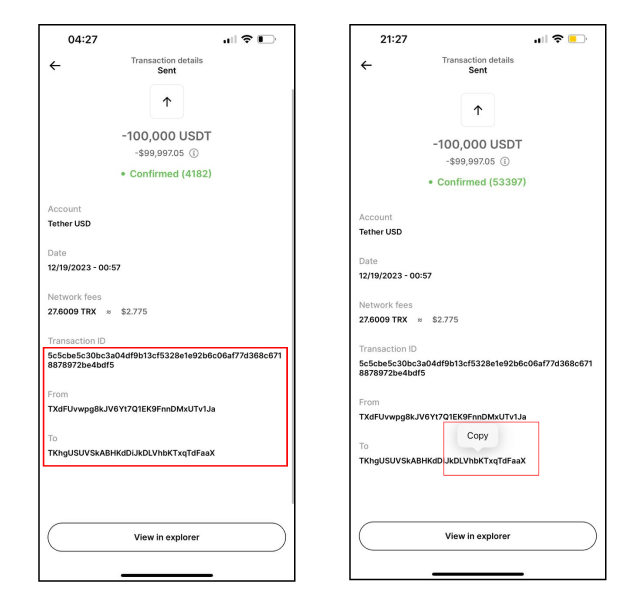 Ledger мало того, что отображает скам-транзакции, так еще и помогает беспрепятственно копировать адреса из истории.