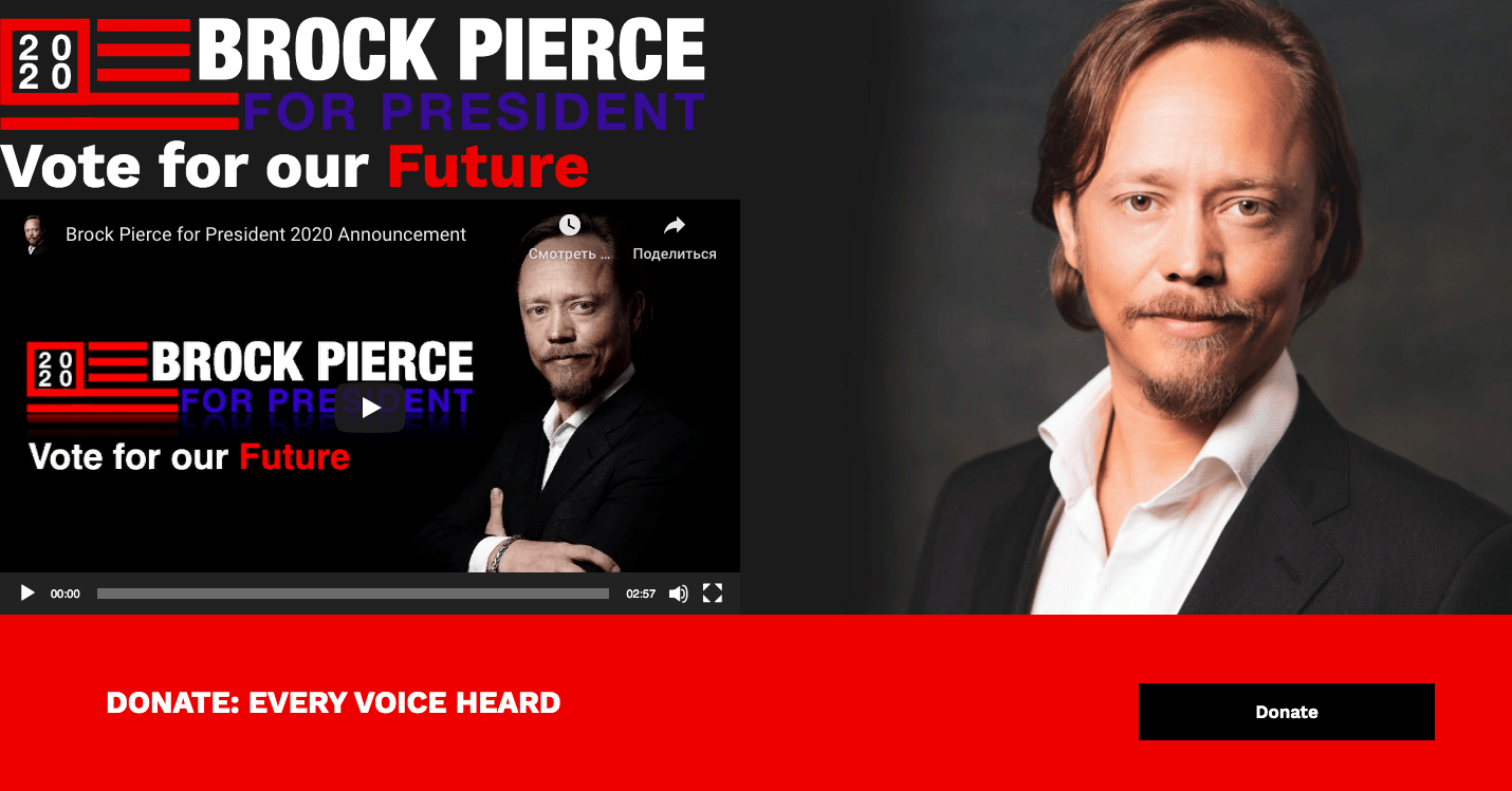 I, Brock Pierce, am running for President of the United States of America. #2020 #BROCKTHEVOTE https://t.co/Ede6mABpTP pic.twitter.com/oTAmxuyOdm