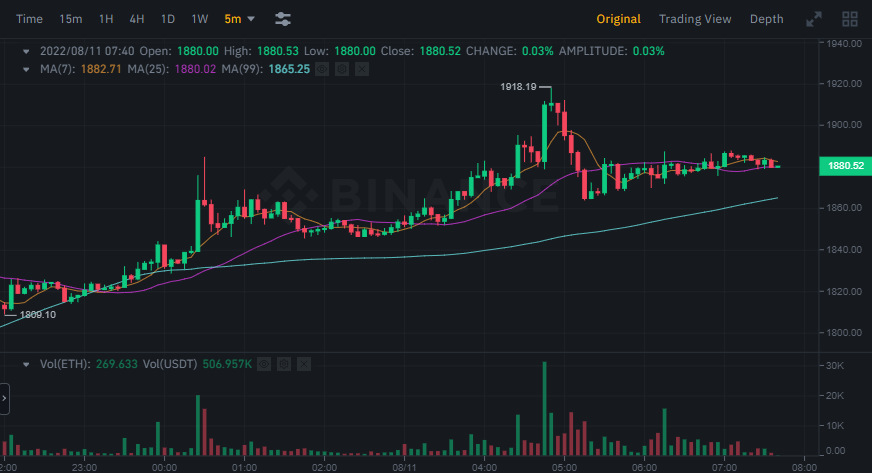 Стоит отметить, что всего за стуки Ethereum вырос на более чем 12%, достигнув в моменте локального максимума на отметке $1918: