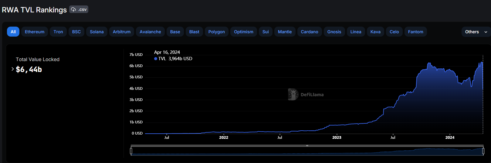 Капитализация сектора RWA на сегодня составляет $6.44 млрд.