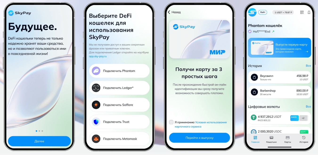 Для российского рынка именно правовой контур часто становится решающим фактором. SkyPay выстроен с учетом действующего законодательства. Платежные карты выпускаются через лицензированный банк, который открывает пользователями именно персональные карты, а конвертация криптовалюты осуществляется за пределами России — через платежную организацию в Казахстане.