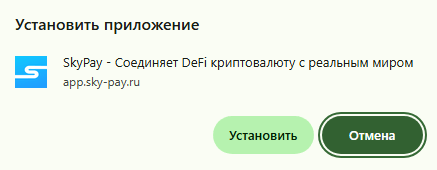 SkyPay работает в формате PWA — приложение устанавливается прямо из браузера и не зависит от App Store или Google Play.