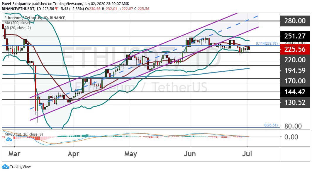 В рамках более долгосрочного развития ситуации ETH вернется в район $233, где проходит 11.4% линия коррекции по Фибоначчи. Целями для растущего движения эфира в предстоящие кварталы последовательно выступят $251, $280, $300 и $320.