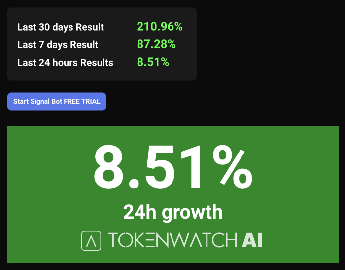 Аналитика эффективности предсказаний за последние 1, 7 и 30 дней: https://tokenwatch.ai/en/investment-results