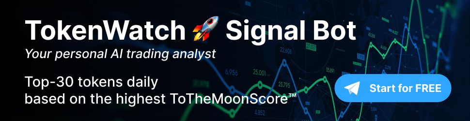 Также есть возможность в несколько кликов в специальном сигнальном боте TokenWatch подключить 7-дневный бесплатный режим получения ТОП-30 ToTheMoonScore предсказаний: