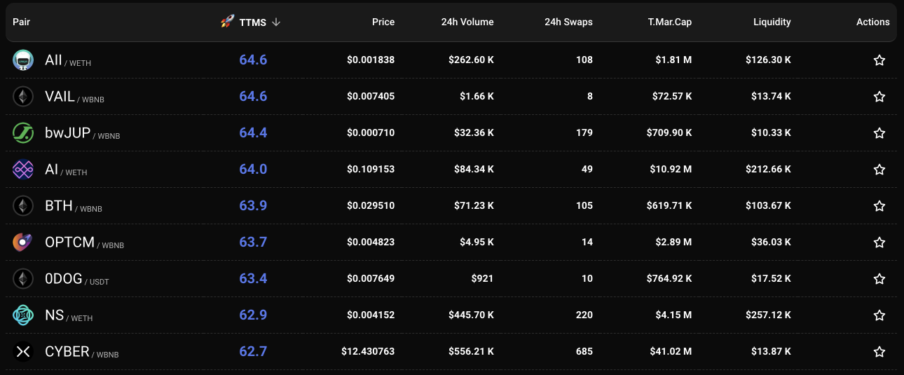 Платформа TokenWatch.ai с собственным токеном $TOKENWATCH предлагает пользователям доступ к ТОП-30 прогнозам наиболее перспективных токенов в каждый момент времени. Платформа использует алгоритмы оценки на основе ИИ (Искусственного Интеллекта), которые присваивают каждому токену текущий рейтинг ToTheMoonScore.