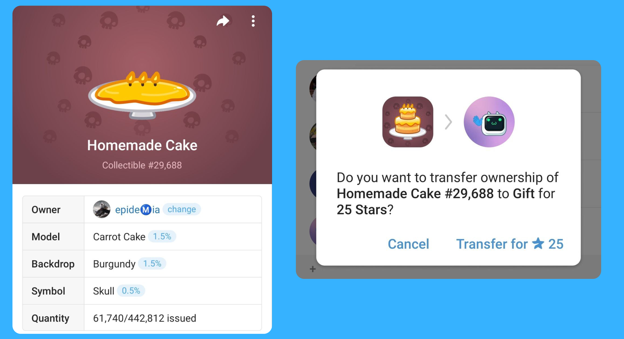 - После передачи бот уведомит вас о получении подарка.
