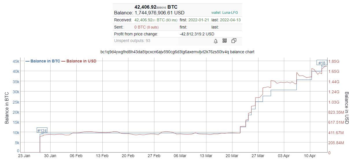 Цена? Можно провести некоторые сравнения. На кошельке Luna Foundation сейчас чуть более 42 000 BTC: