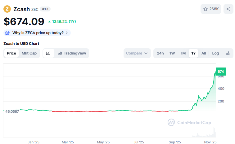 После длительного застоя октябрь 2025 года стал поворотным моментом для рынка приватных криптовалют. Zcash неожиданно показал рост более чем на 700% всего за один месяц.